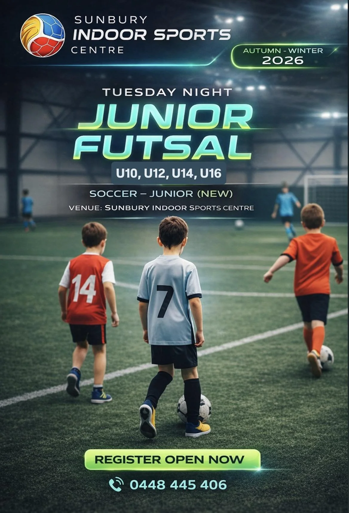 Welcome to Junior Futsal at Sunbury Indoor Sports Centre, where boys and girls aged 8 to 16 can experience the thrill of indoor soccer in a supportive and engaging environment.